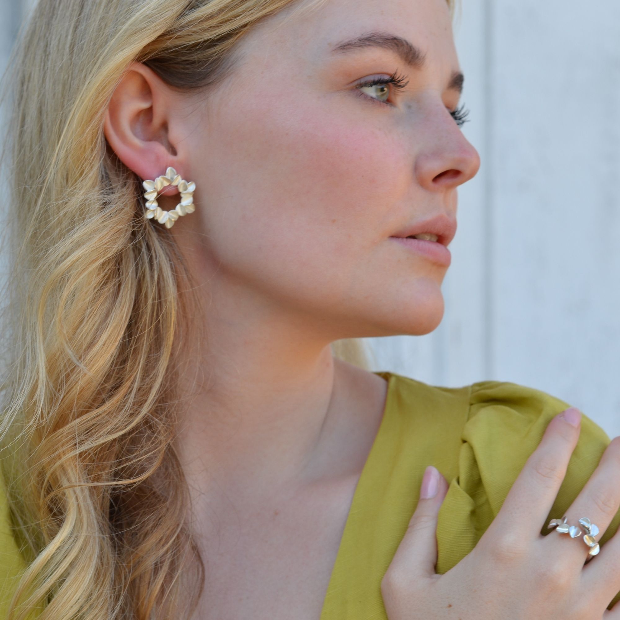 Sanfte Formen wie Blätter im Wind – inspiriert vom Olivenbaum, ein Symbol für Frieden, Erde und Ewigkeit.