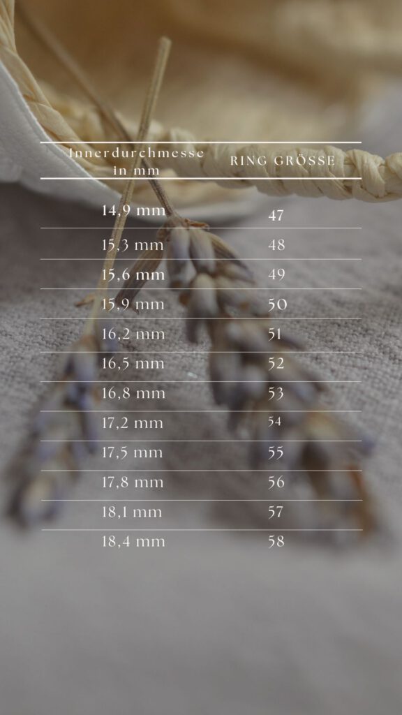 Die richtige Ringgröße zu finden, ist kinderleicht, wenn man bereits einen Ring hat, der passt. Messen Sie den Innendurchmesser in Millimetern, und voilà, Sie haben die perfekte Größe für Ihre Online-Bestellung parat.